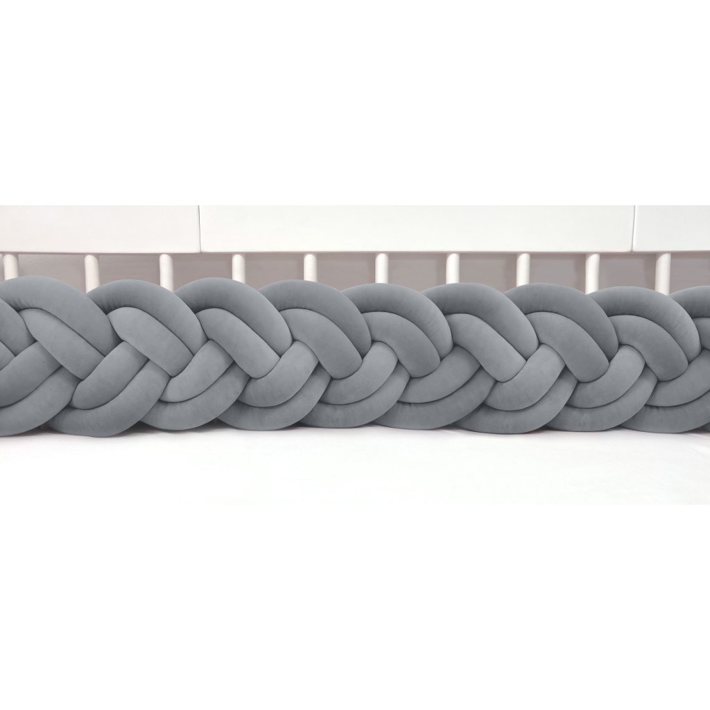 Plyšový ochranný zapletaný mantinel - pletenec šesťkový slúži ako ochranca vášho dieťatka v postieľke a zároveň ako štýlový doplnok v detskej izbe. Pletenec má sadu ozdobných stúh na pripevnenie. Výška cca 30 cm, hrúbka cca 10 cm. Mantinel je dostupný v rôznych dĺžkach (od 120 cm do 400 cm). Všetky pramene sú vyrobené z kvalitného Prémium bavlneného velúru (certifikát Oeko Tex Standard 100) a ručne spletené do vrkoča. Záruka najvyššej kvality – 100% Handmade. Farba: tmavošedý, číslo vo vzorkovníku: 19.