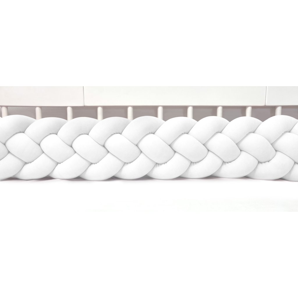 Plyšový mantinel do postieľky - štvoritý pletenec biely