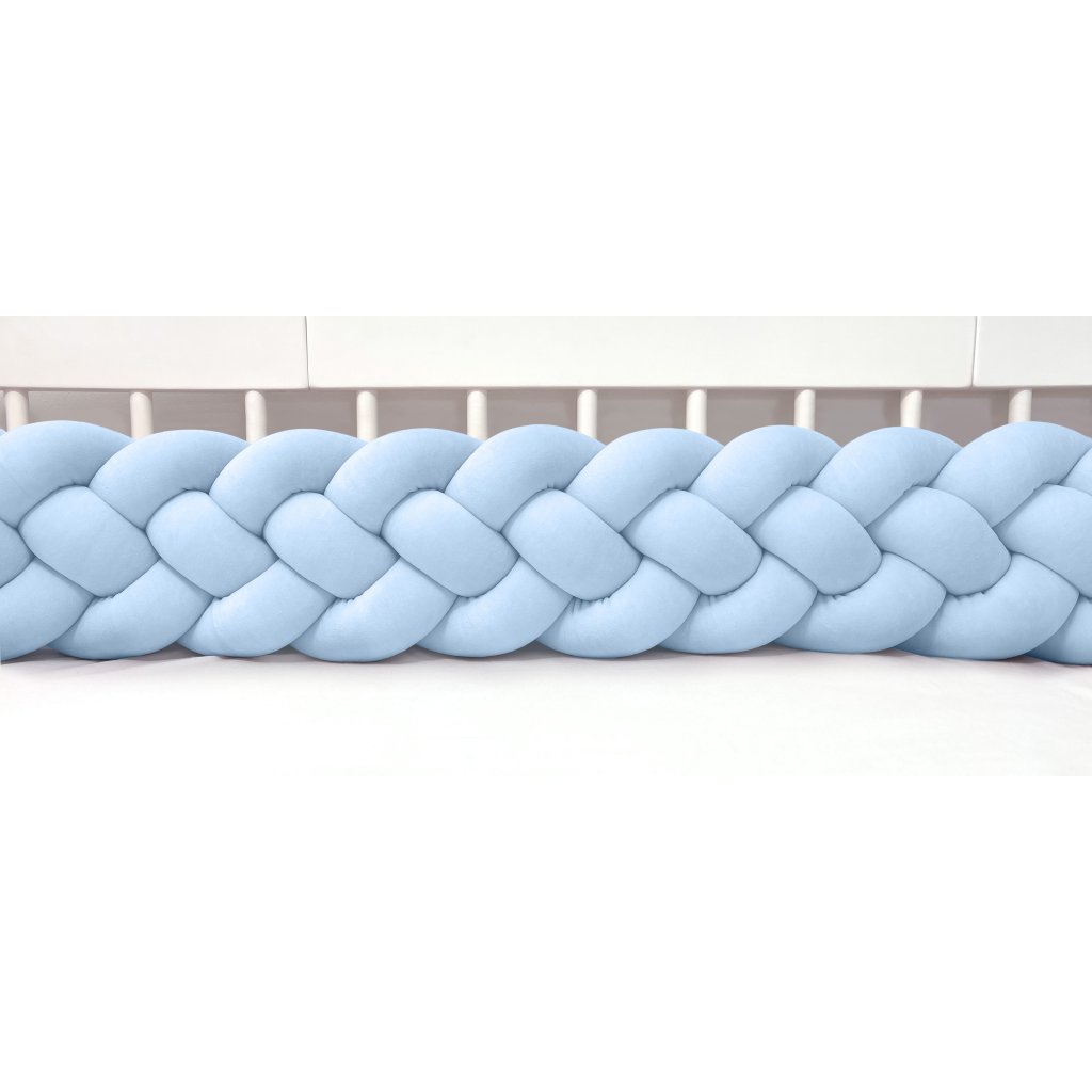 Plyšový mantinel do postieľky - štvoritý pletenec bledomodrý