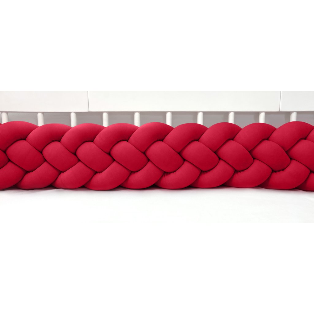 Plyšový mantinel do postieľky - štvoritý pletenec červený