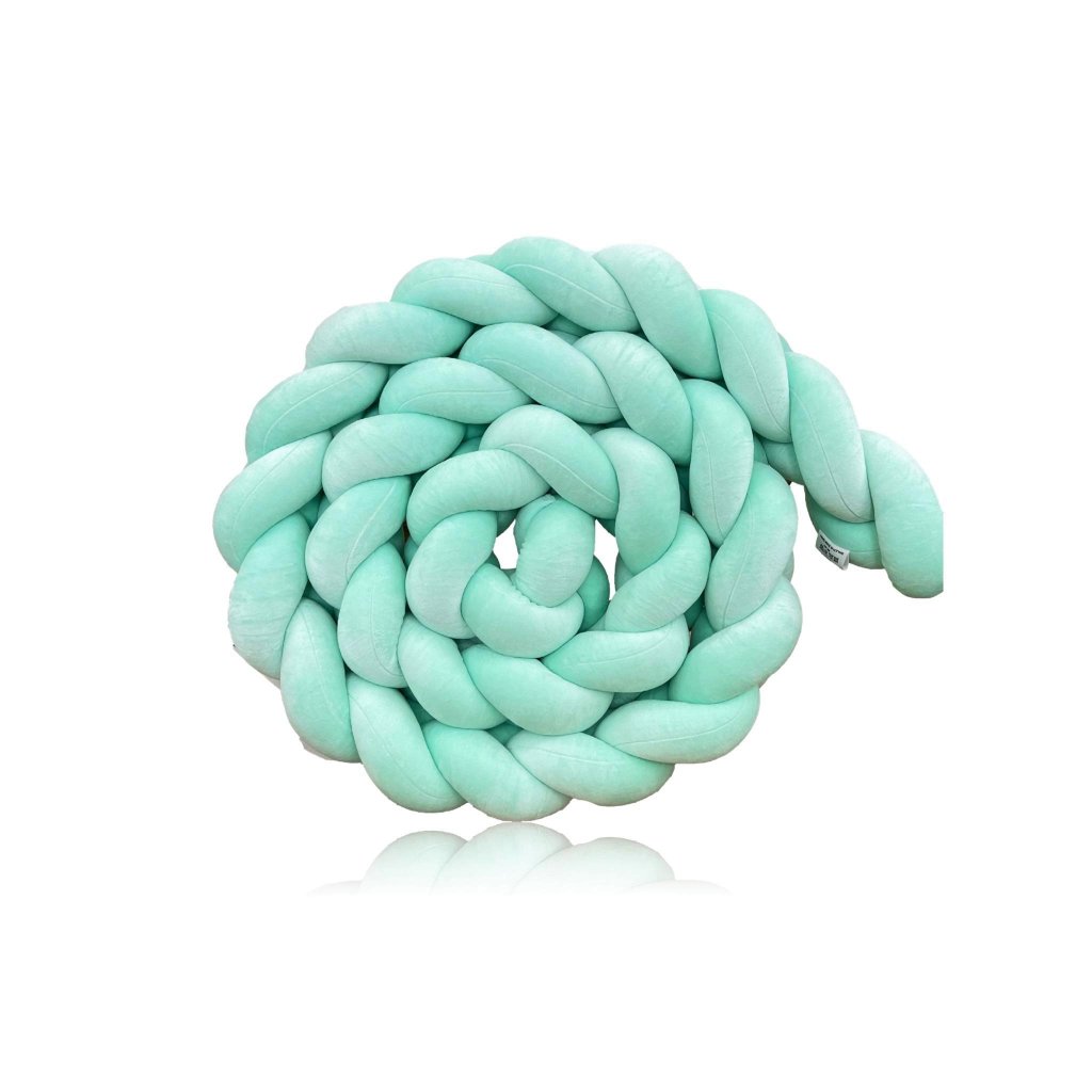 Plyšový ochranný zapletaný mantinel - pletenec trojitý slúži ako ochranca vášho dieťatka v postieľke a zároveň ako štýlový doplnok v detskej izbe. Pletenec má sadu ozdobných stúh na pripevnenie. Výška cca 15 cm, hrúbka cca 6 cm. Mantinel je dostupný v rôznych dĺžkach (od 120 cm do 400 cm). Všetky 3 pramene sú vyrobené z kvalitného Prémium bavlneného velúru (certifikát Oeko Tex Standard 100) a ručne spletené do vrkoča. Záruka najvyššej kvality – 100% Handmade. Farba: bledá mäta, číslo vo vzorkovníku: 12.