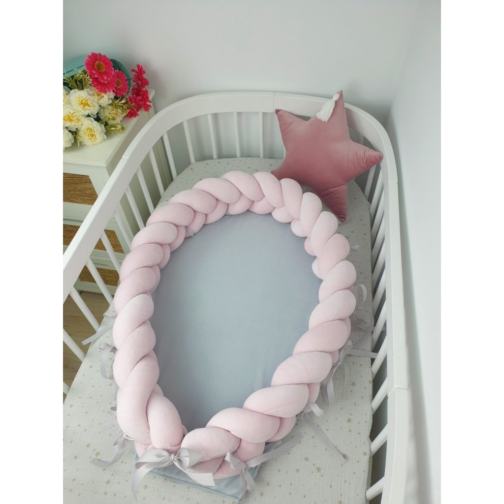 Plyšový mantinel do postieľky - trojitý pletenec bledoružový