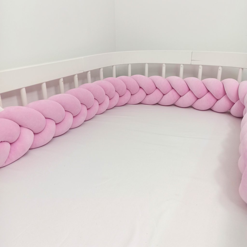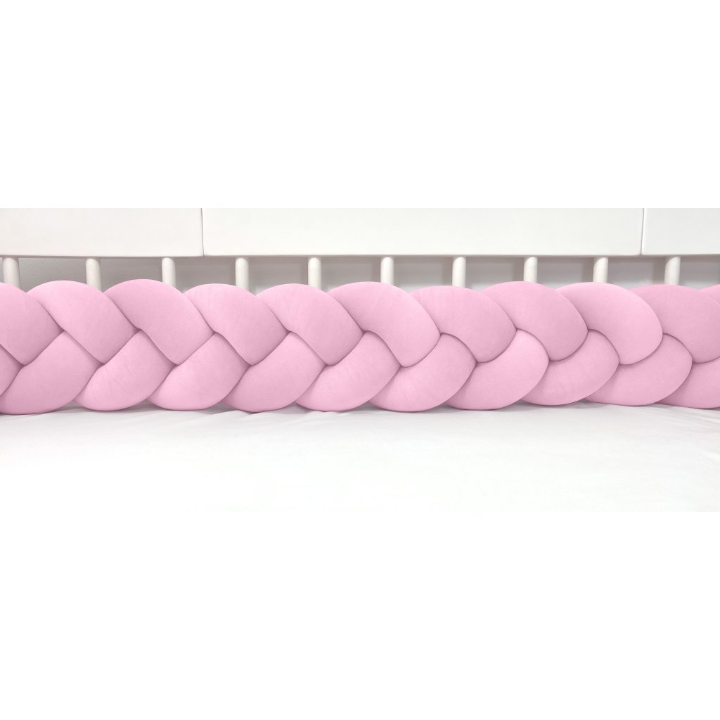 Plyšový mantinel do postieľky - trojitý pletenec ružový