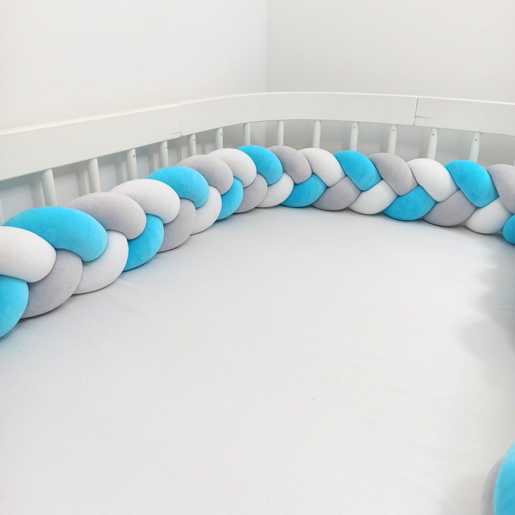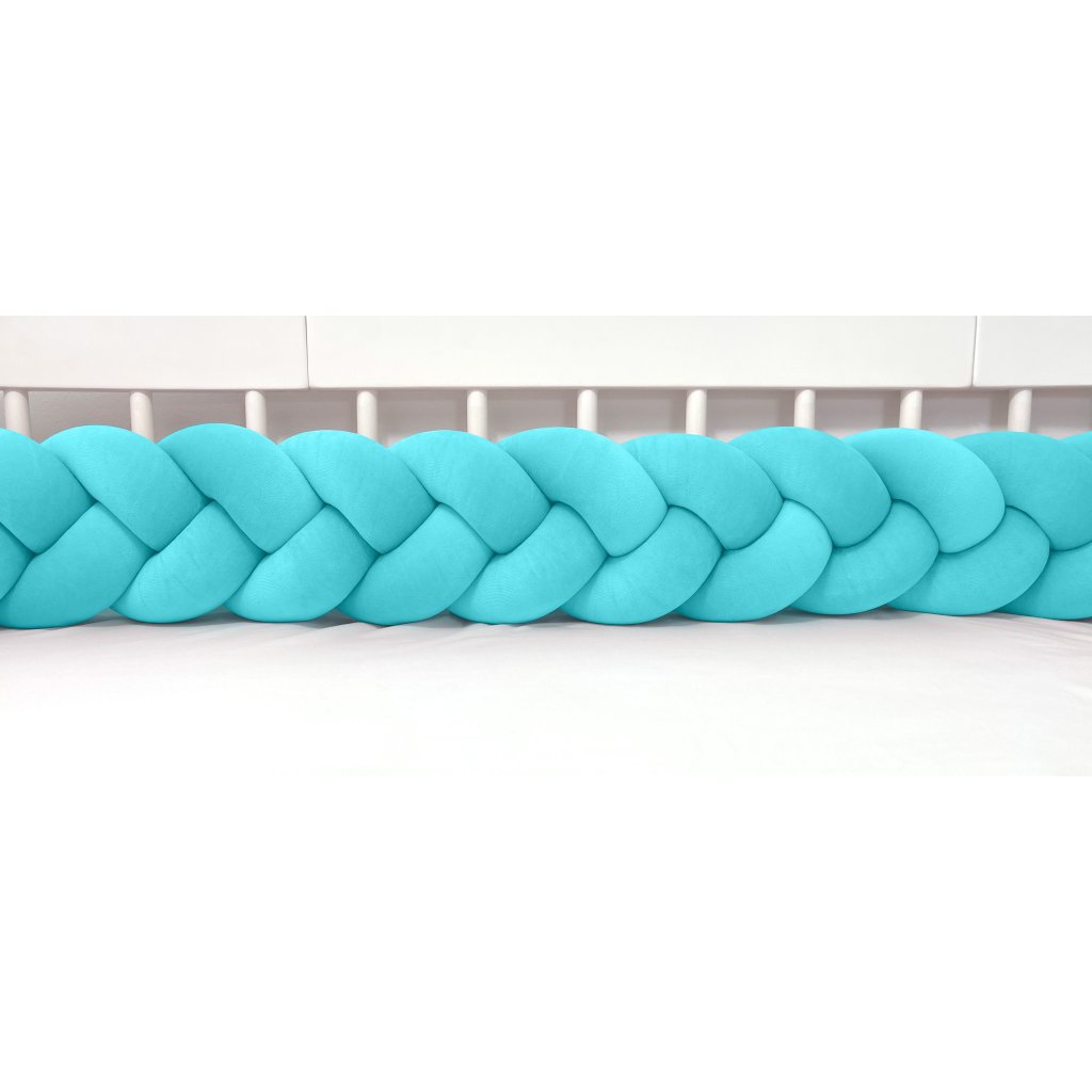 Plyšový mantinel do postieľky - trojitý pletenec tyrkysový