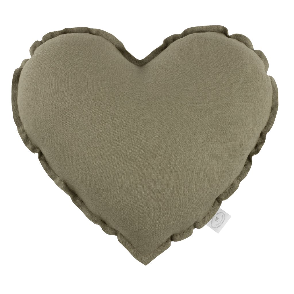 Pure Nature dekoračný vankúš srdce zo 100% ľanu olivová