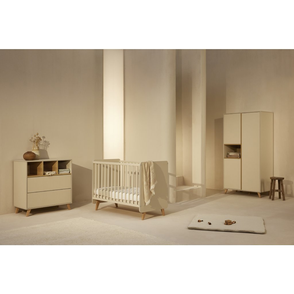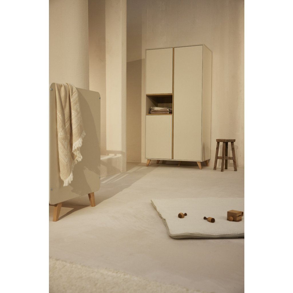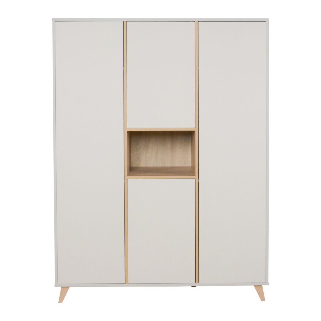 Detská trojdverová skriňa so škandinávskym nádychom. Disponuje veľkým úložným priestorom, v ktorom uskladníte detské oblečenie alebo zavesíte detské šaty a bundy. Farba skrine je béžová.