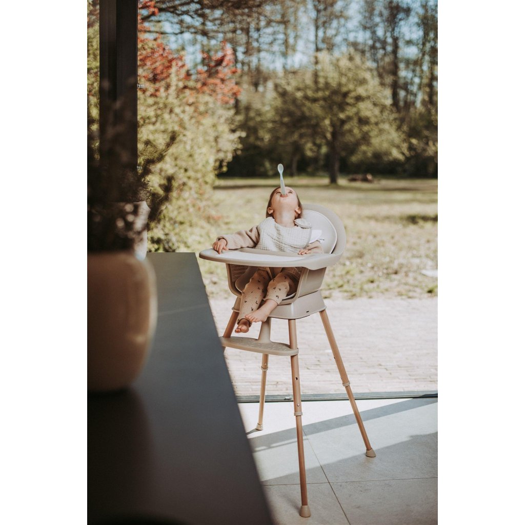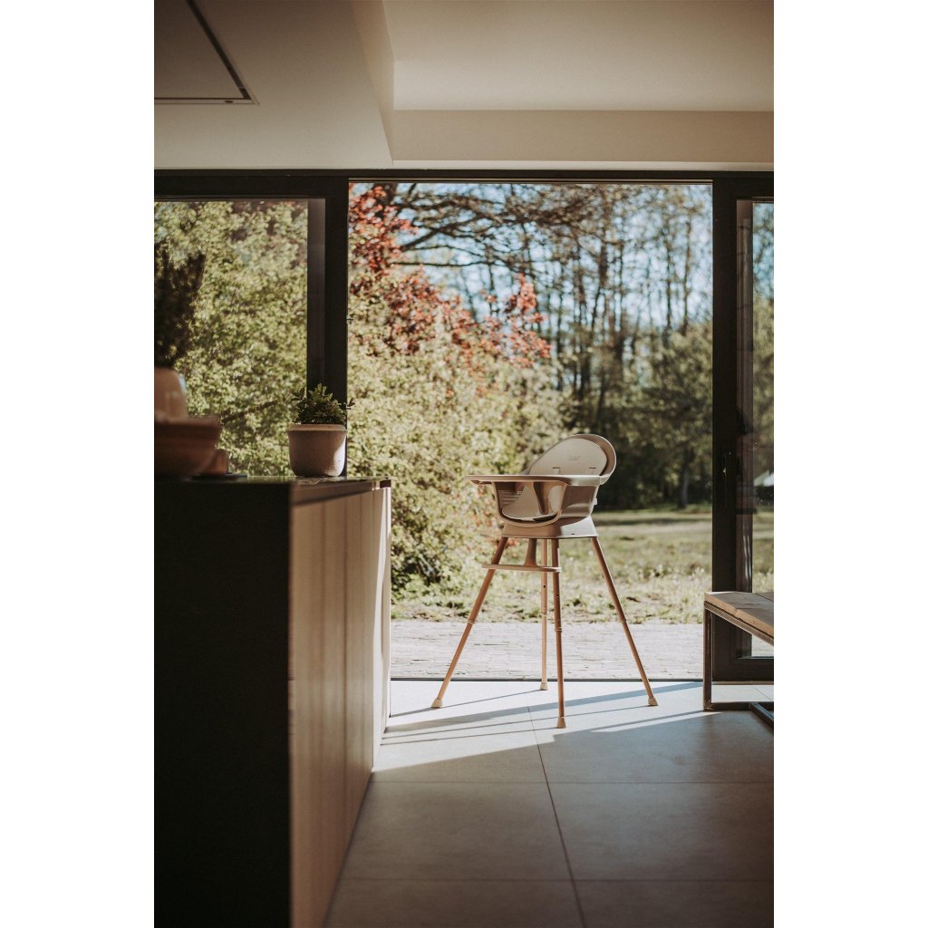 Dizajnová stolička s imitáciou dreva prestaviteľná na kreslo. Súčasťou ceny je aj vankúšik, pult na kŕmenie a bezpečnostné pásy. Je nastaviteľná v 3 výškach. Vhodná od 6 mesiacov do 6 rokov.