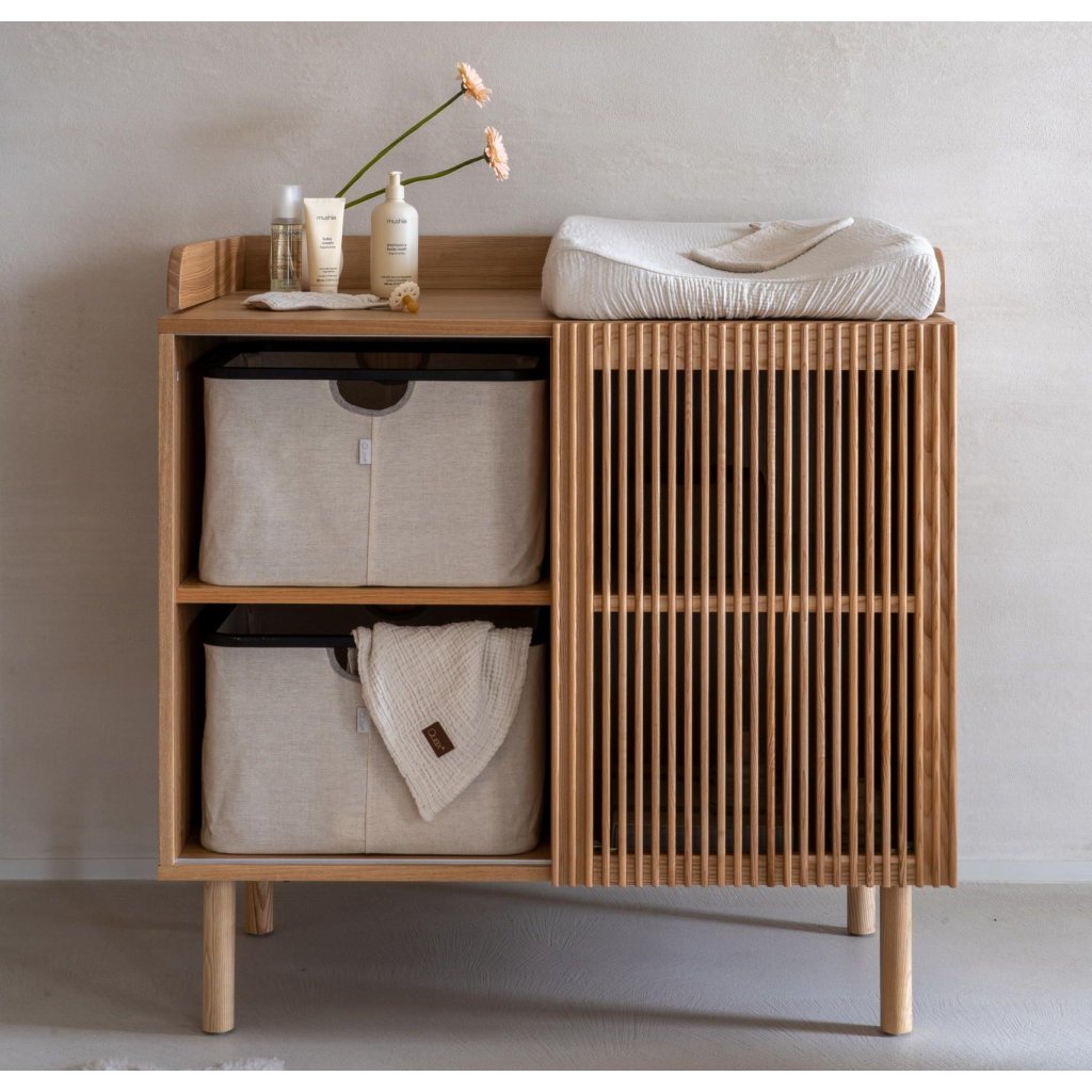 Prebaľovací rám na komodu je praktickým pomocníkom na prebaľovanie bábätka počas prvých mesiacov bez poškodenia komody. Vytvára stabilné a bezpečné prostredie pre každodenné úlohy výmeny plienok. Tento rám je určený na komodu Yume Natural Ash a Yume.