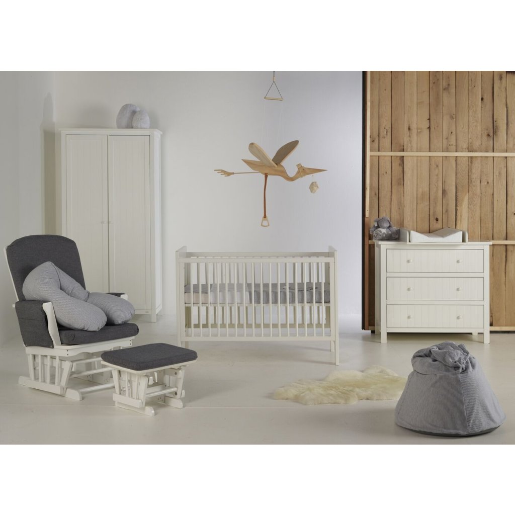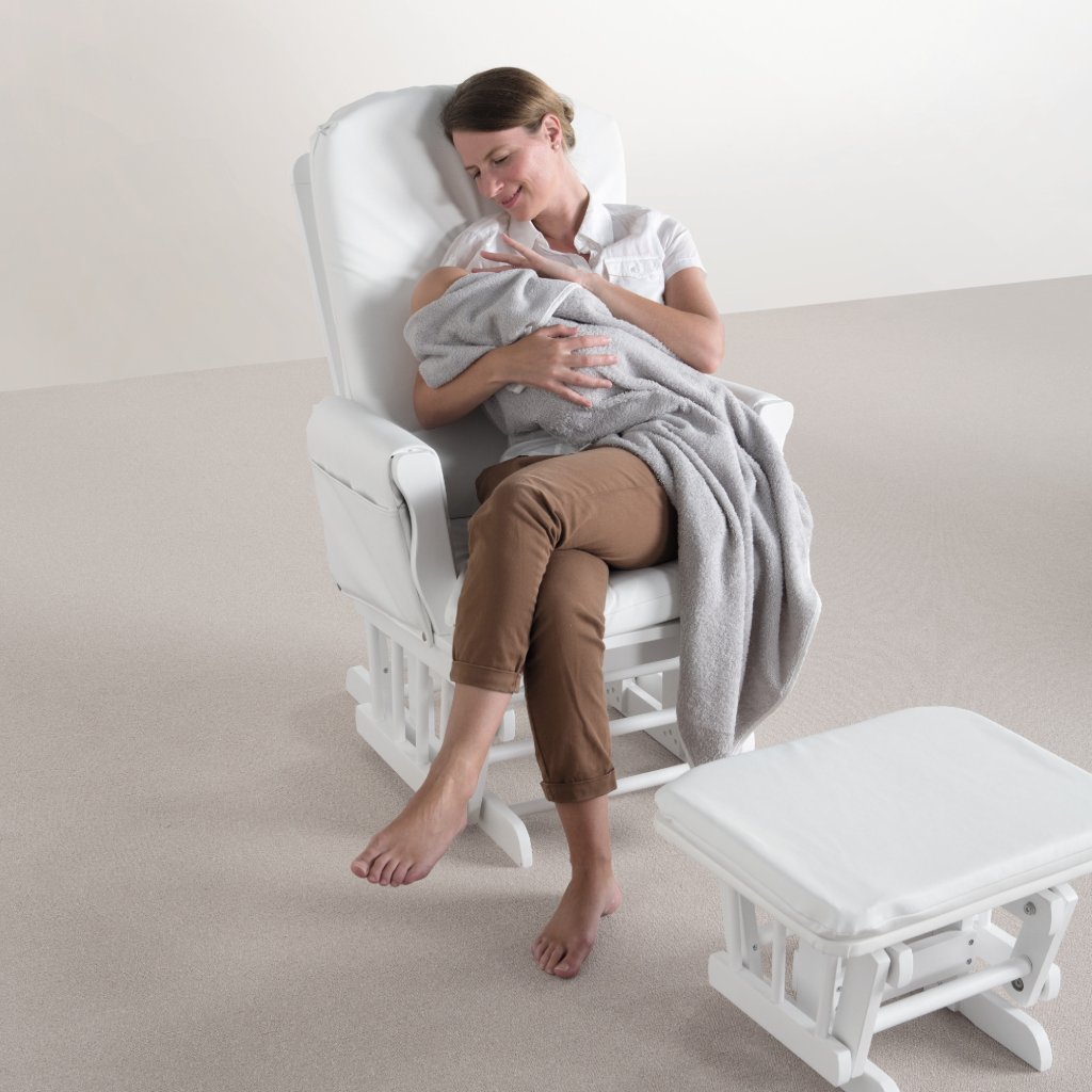 Hojdacie kreslo pre dospelých, ideálne pri dojčení bábätka alebo oddych. Je pohodlné s vysokým operadlom a pod rúčkami. Konštrukcia je vyrobená z kaučukového dreva.