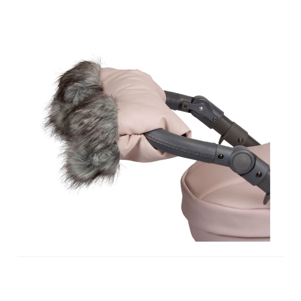 Hrejivé rukavice z ekokože v jemnej bledoružovej farbe na akýkoľvek typ kočíka, ktoré chránia Vaše ruky pred zimou a mrazom. Ozdobené výraznou umelou kožušinou. Rukavice sa jednoducho upevnia na rukoväť kočíka cvokmi. Vonkajšia časť rukávnika z vodeodolného materiálu a vnútorné zateplenie poskytnú rukám príjemný komfort aj v chladnom a nepriaznivom počasí. Dostupné vo viacerých farbách.