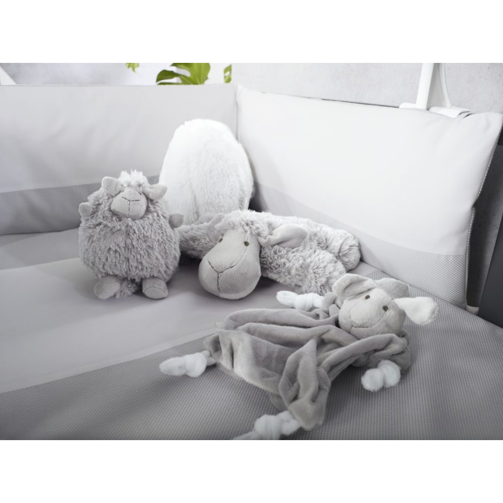 Plyšový mantinel do postieľky 60x120cm. Snímateľný poťah, certifikát Öko-Tex Standard 100, farba bledošedá