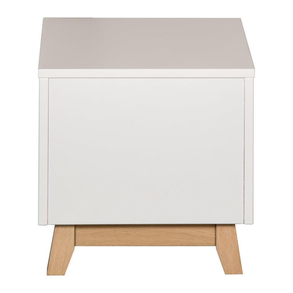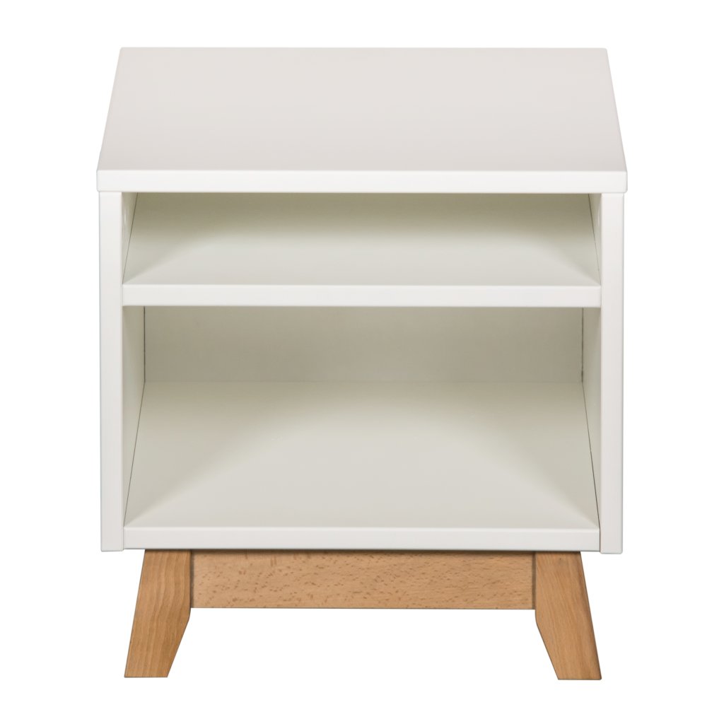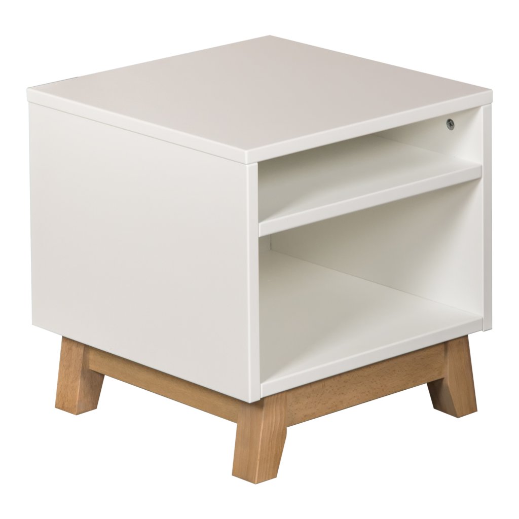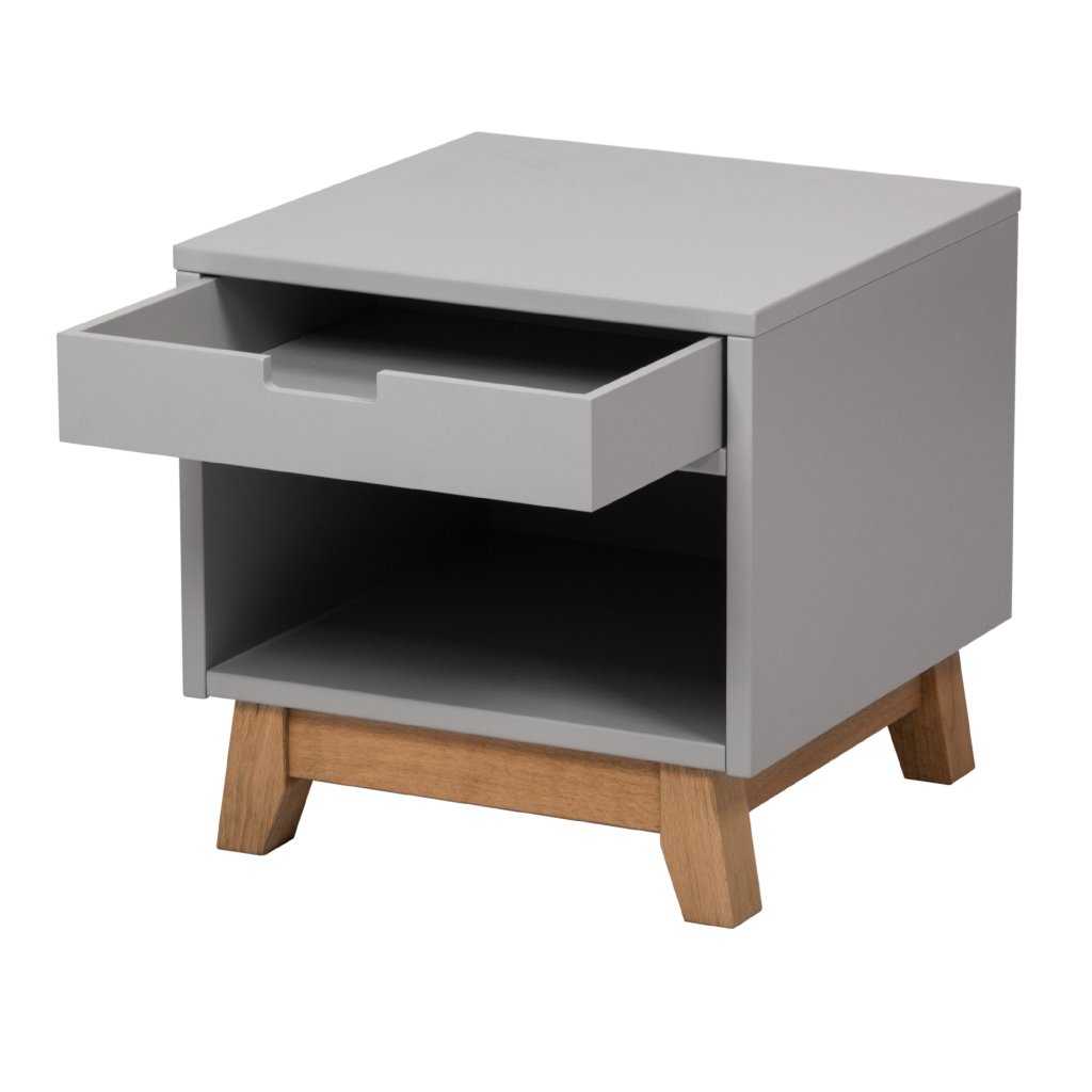 Dizajnový nočný stolík ku posteli s drevenými nohami z masívnej borovice sa stane neoddeliteľnou súčasťou detskej izby z kolekcie Trendy. Vhodná do juniorskej izby alebo aj do spálne rodičov. Ku stolíku je možné si dokúpiť praktickú zásuvku (nie je v cene). Dostupný v 2 farbách: biela a šedá.