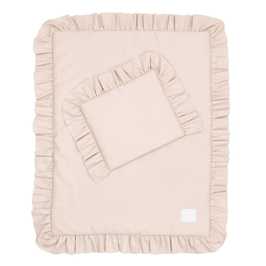 Nádherné posteľné prádlo s volánikmi zo saténovej bavlny je zárukou dobrého spánku dieťatka v rozmere 50x65 cm a 80x100cm, vhodné pre novorodenca 0+.