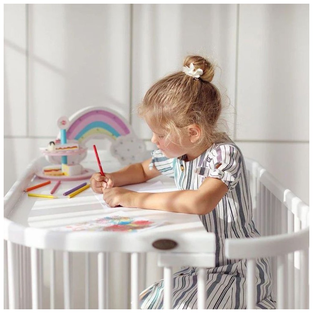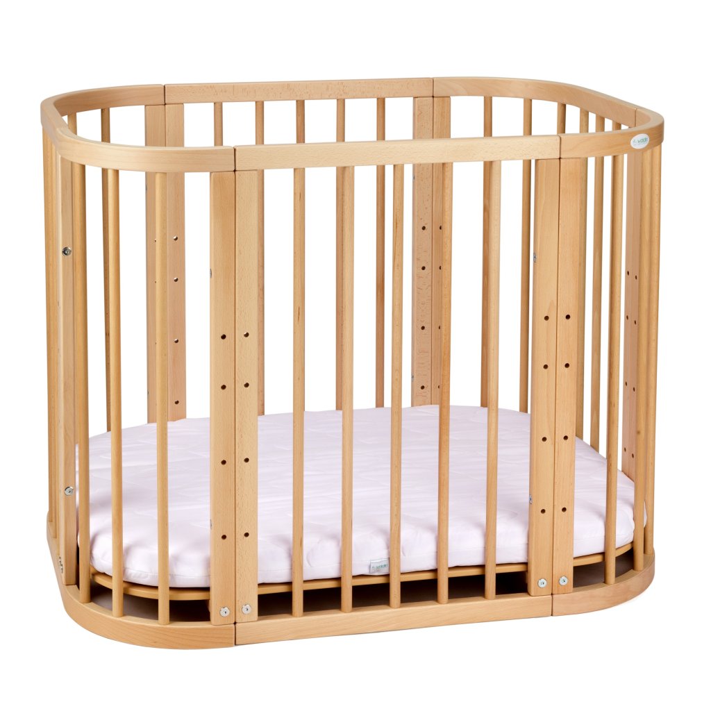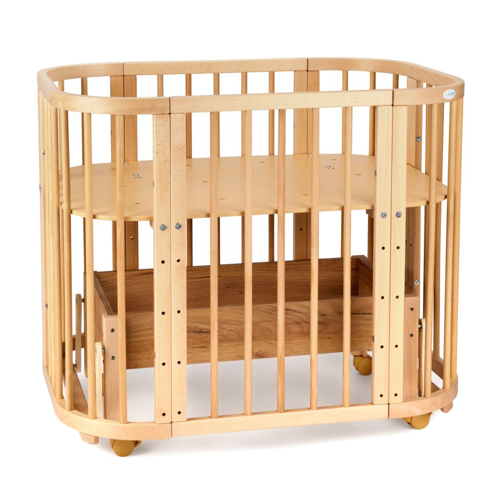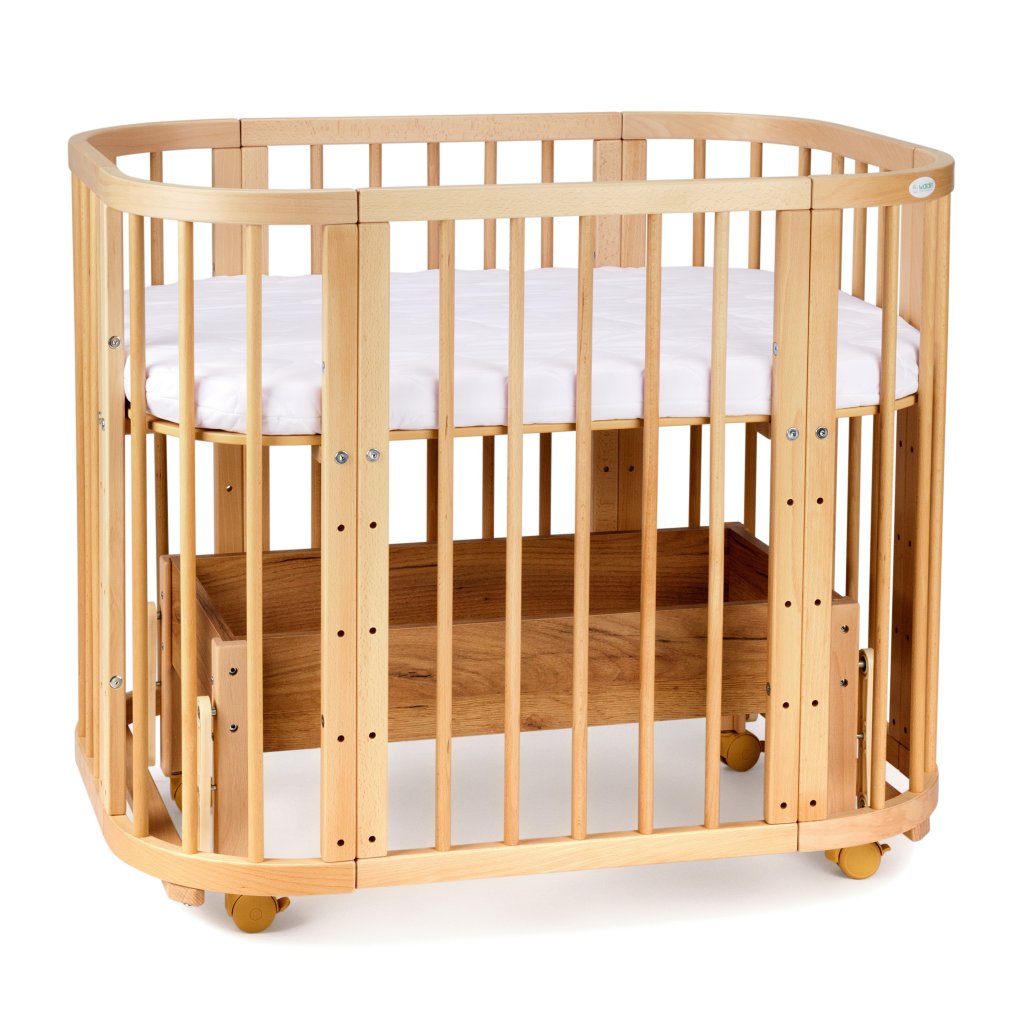 Jedinečná multifunkčná drevená postieľka 5v1 s hojdacím mechanizmom a s matracom, ktorá rastie s vašim dieťaťom. Používa sa ako prístelka, kolíska, postieľka, ohrádka a neskôr ako písací stôl. Možnosť nastavenia roštu do ľubovoľnej výšky. Je vyrobená zo starostlivo vybraných materiálov a zaručuje vášmu drobcovi bezpečnosť a pohodlie. Vyrobená z bukového dreva.