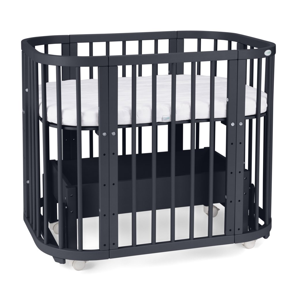 SmartTrip rastúca oválna postieľka s kolískou a s matracom 5v1 - tmavosivá