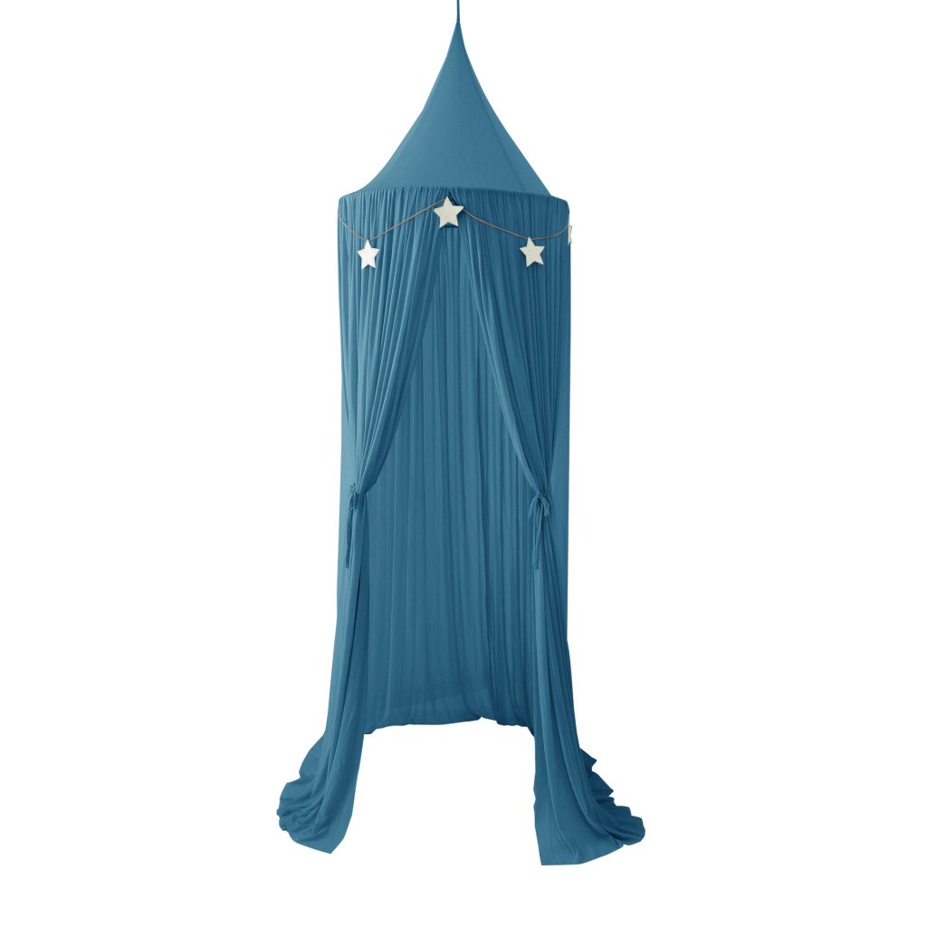 Baldachýn, ktorý má minimalistický dizajn, dodávaný so stuhami vo vnútri a spredu, ktoré môžu zaistiť kolotoče a iné závesné dekorácie.