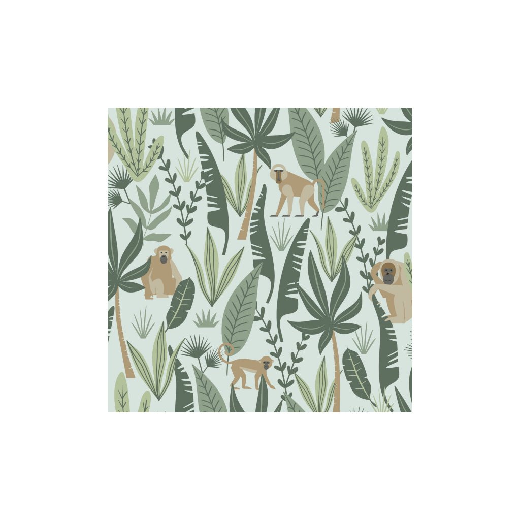 Tapeta s opičkami je ideálna na vytvorenie detskej izbičky s motívom džungle. Dostupná v piatich rôznych farbách.
