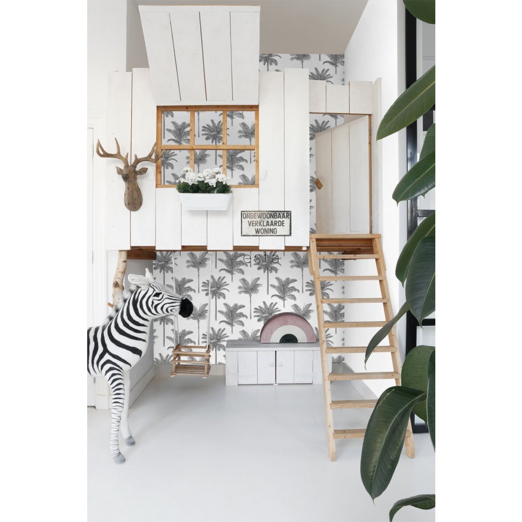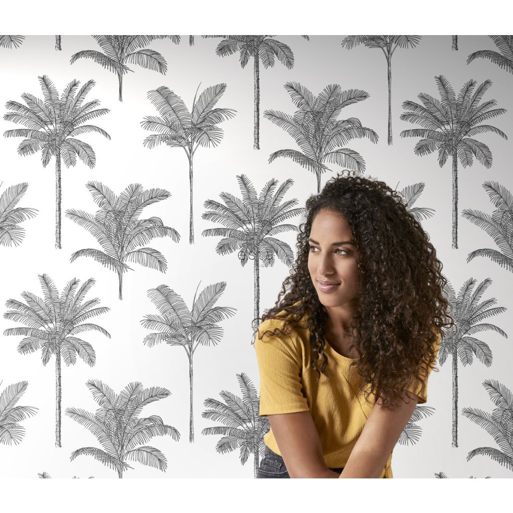 Ozdobte svoje steny touto nádhernou exotickou potlačou s čiernymi a bielymi palmami a vytvorte si vlastnú mestskú džungľu. Dostupná v rôznych farbách.
