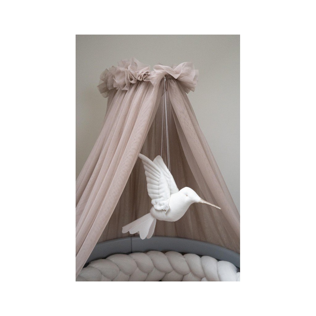Elegantný hustý baldachýn je elegantný doplnok, vďaka ktorému bude detská postieľka útulnejšia a dieťa sa bude cítiť bezpečnejšie. Súčasťou balenia je stojan na uchytenie k postieľke a závoj. Vhodný na akúkoľvek postieľku vďaka univerzálnemu systému uchytenia.