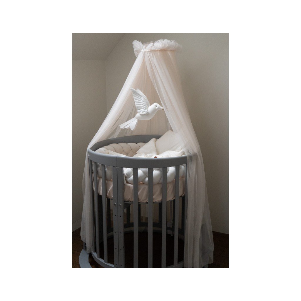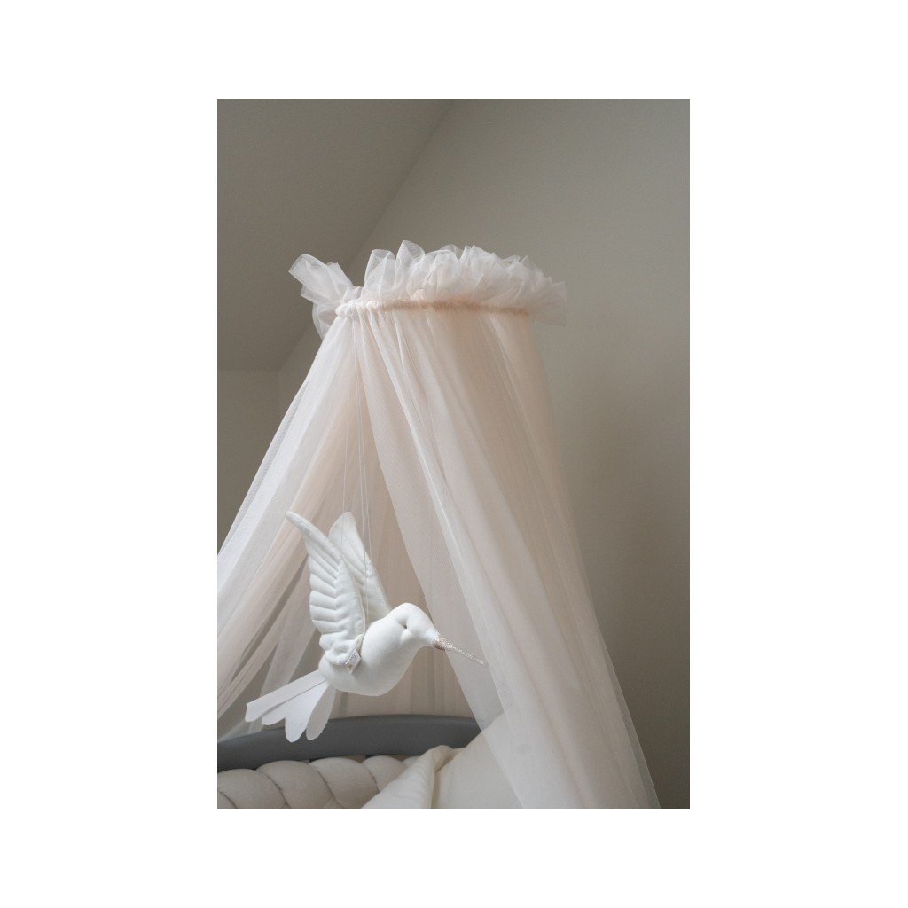 Elegantný hustý baldachýn je elegantný doplnok, vďaka ktorému bude detská postieľka útulnejšia a dieťa sa bude cítiť bezpečnejšie. Súčasťou balenia je stojan na uchytenie k postieľke a závoj v jemnej lososovej farbe. Vhodný na akúkoľvek postieľku vďaka univerzálnemu systému uchytenia.