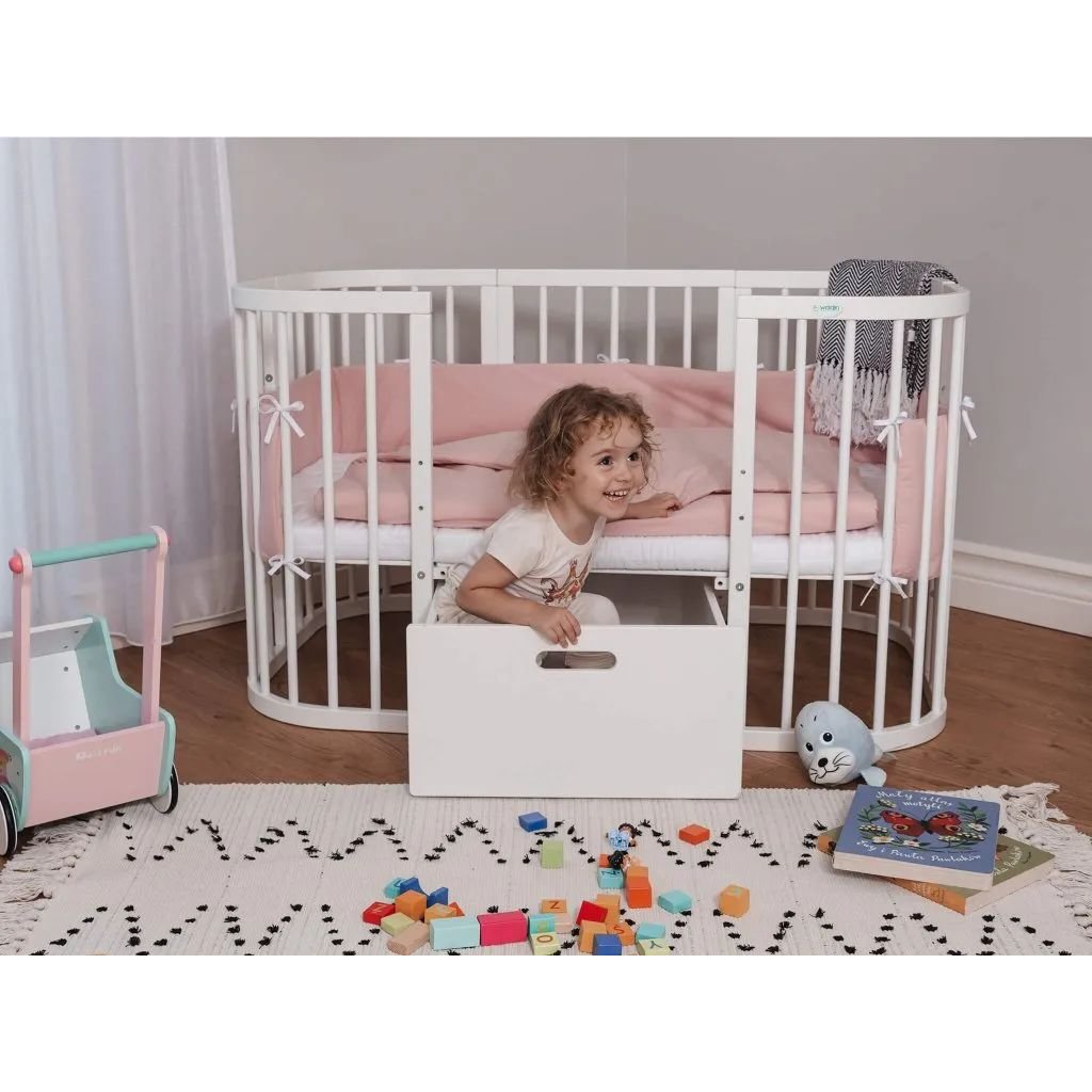 Praktická mobilná zásuvka na kolieskach, ktorá je vhodná pre rastúcu oválnu postieľku SmartGrow a SweetDream. Zásuvka je pomerne dosť veľká, vďaka čomu získate veľmi praktický úložný priestor na obľúbené hračky alebo posteľnú bielizeň. Každá mamička tieto zásuvky veľmi ocení.
